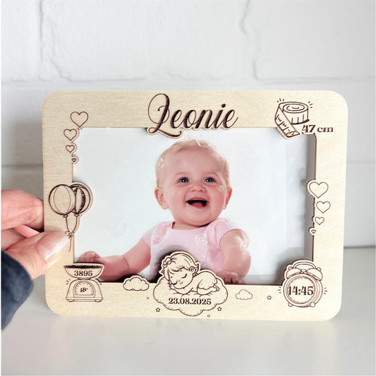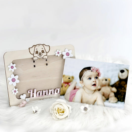 Bilderrahmen aus Rohholz mit Foto auf Metall