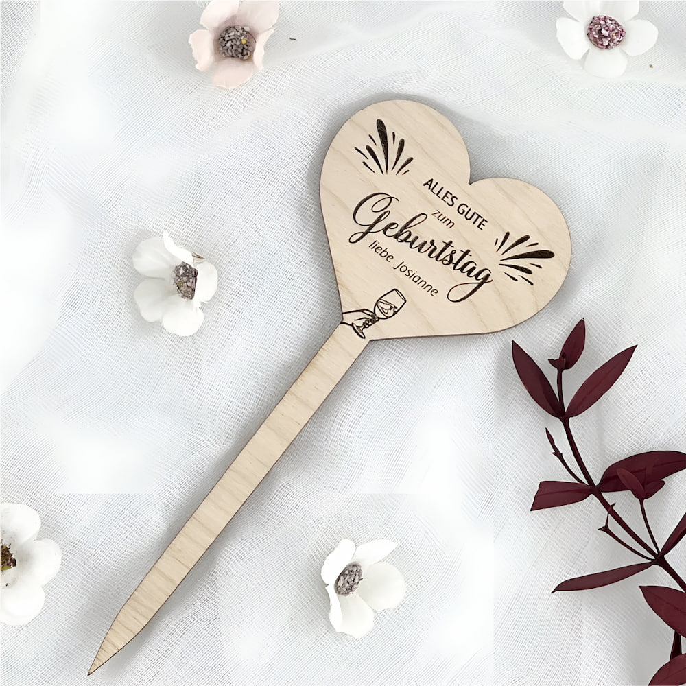 Dank präziser Lasertechnik entstehen saubere Schnittkanten und filigrane Gravuren, die jedes Stück zu einem hochwertigen Unikat machen. Die warme Holzoptik wirkt natürlich, zeitlos und passt perfekt zu frischen Blumen, Topfpflanzen oder dekorativen Geschenkideen. Ob als kleines Dankeschön, liebevolle Aufmerksamkeit oder persönliche Botschaft: Die stilvoll gestalteten Holzstecker sind ein Zeichen echter Wertschätzung und machen jedes Blumenarrangement zu etwas ganz Besonderem.